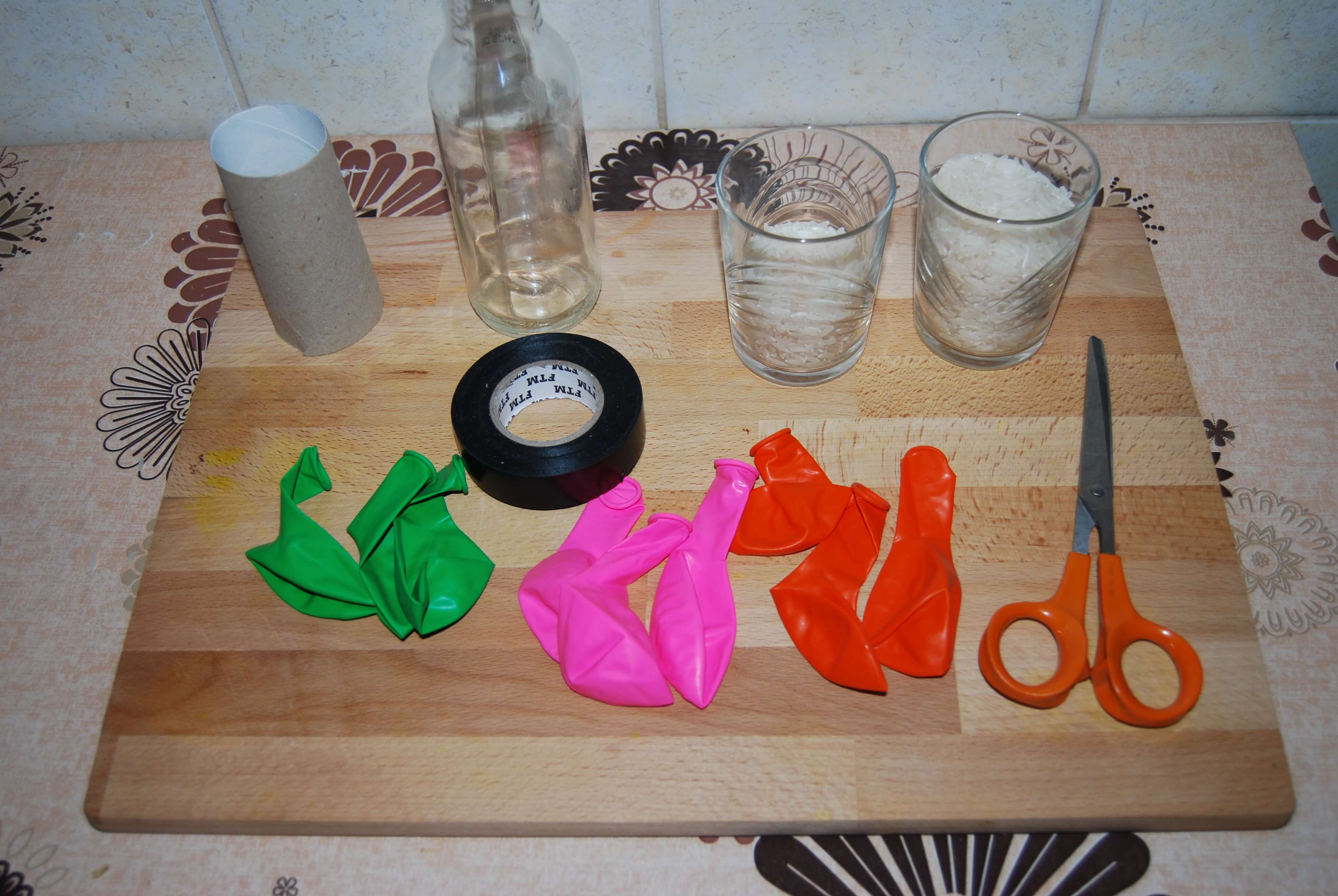 Take the second and third balloon of different colors and repeat step 1 and 2 by measuring half a cup, filling the bottle with it by using a funnel with filling, inflating the balloons and filling them up, then detaching them from the bottles. It’s that easy. These three filled up balloons will form the base of the juggling balls.
