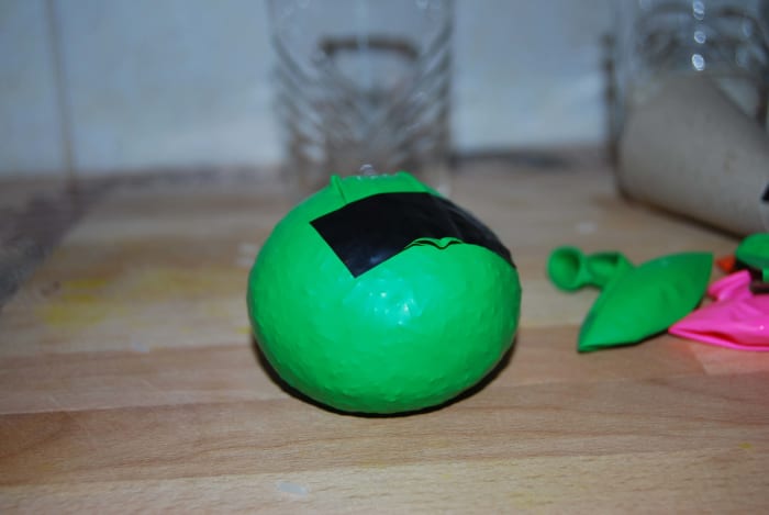 With the colored circle up take one balloon piece and cover the ball. Repeat this for the other balloon pieces. Congratulations! You made three juggling balls. Covering it twice will improve look and durability. You can make your juggling balls more fun by painting them or putting stickers to form different patterns. Even write your names on them.